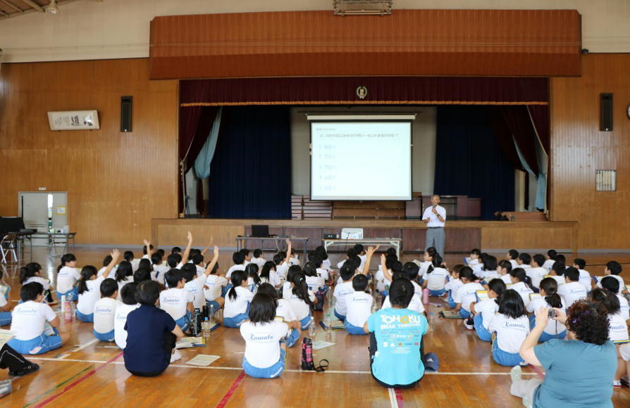 令和元年9月26日、福島市立鎌田小学校において「こども環境教室~水のゆくえ~」を開催しました。 今回は4年生 88名を対象に当協会福島支部 青年部と連携し90分間の出張授業を行いました。