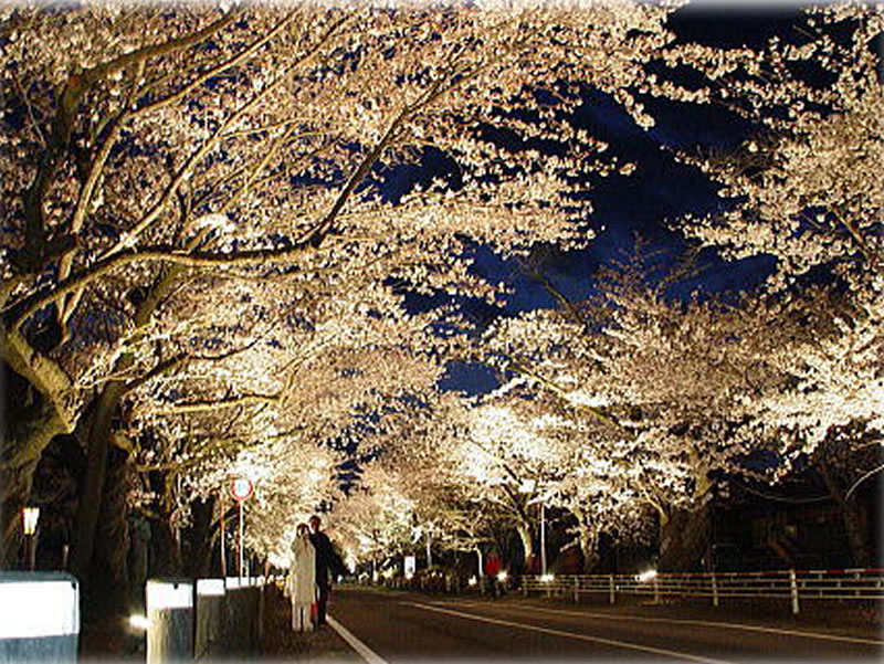 夜の森地区の道路両側に立ち並ぶ桜のトンネルは甘~い香りを漂わせ、花見客は桜並木を見上げ春の訪れを満喫していました。