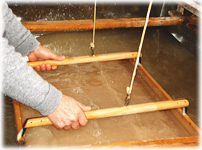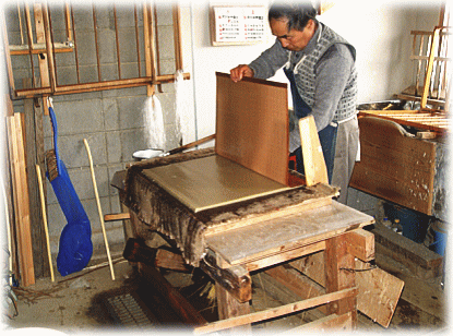 渡し場跡近くに住む安斎保彦・則子さん夫婦は、和紙の暖かみや素朴な質感を醸しだす手漉き和紙を原料の楮から育て、上川崎和紙の伝統を守っています。