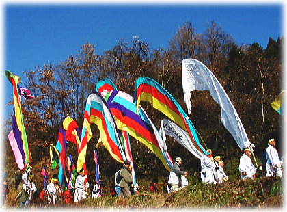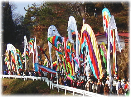この祭りは、前九年の役の戦いにおいて戦いに敗れた源氏の軍勢がわずか数騎で木幡山に立て籠もった時、これを追撃していた安部の軍勢が雪に覆われた杉林を源氏の軍勢の白旗と見誤り、戦わずして敗走した故事に由来するものです。