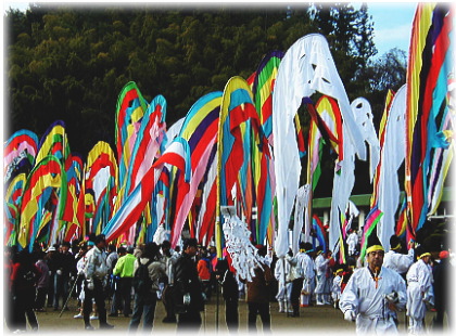 冬空に ほら貝の音と 五反旗